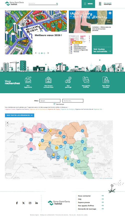 Votre nouvelle cartographie est à retrouver sur la page d’accueil du site internet, elle répertorie l’ensemble des résidences gérées par l’Office, ainsi que les agences et l’Espace Relation Locataire.