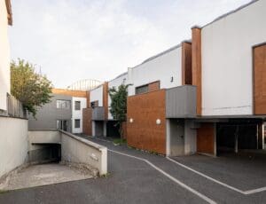 Cet immeuble collectif est organisé sur deux niveaux. La résidence possède également un parking extérieur et en sous-sol. Elle est située dans une zone pavillonnaire.