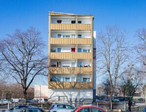 Cette grande résidence, qui sera prochainement réhabilitée, a été pensée comme un lieu sûr pour les enfants. Elle se situe en lisière du Parc Départemental Georges Valbon et compte également un grand espace vert en son centre.