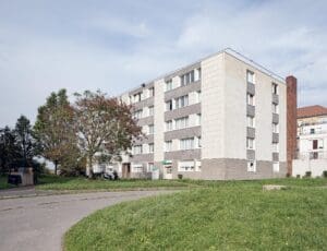 Cette résidence a été construite près de l’université pour accueillir les étudiants et le personnel. Trop isolées, après plusieurs concertations, une réhabilitation est en cours pour l’ouvrir à la ville.